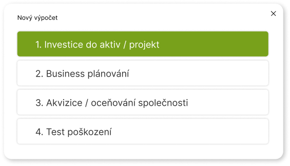 Definujete termín výpočtu, periodizaci, podrobné vstupní parametry a způsob jejich změny. Flexibilně a snadno plánujte, analyzujte a simulujte peněžní toky.