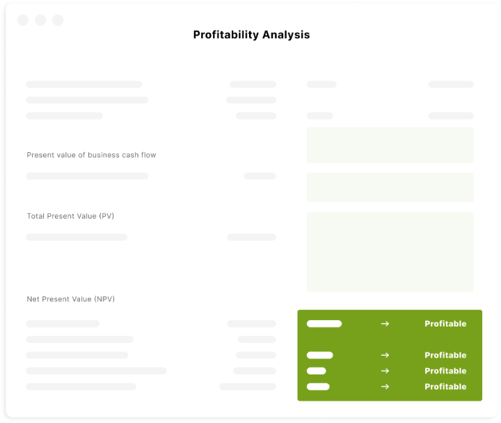 Gain insights into profitability, DCF-profitability, sensitivity, risk and more.